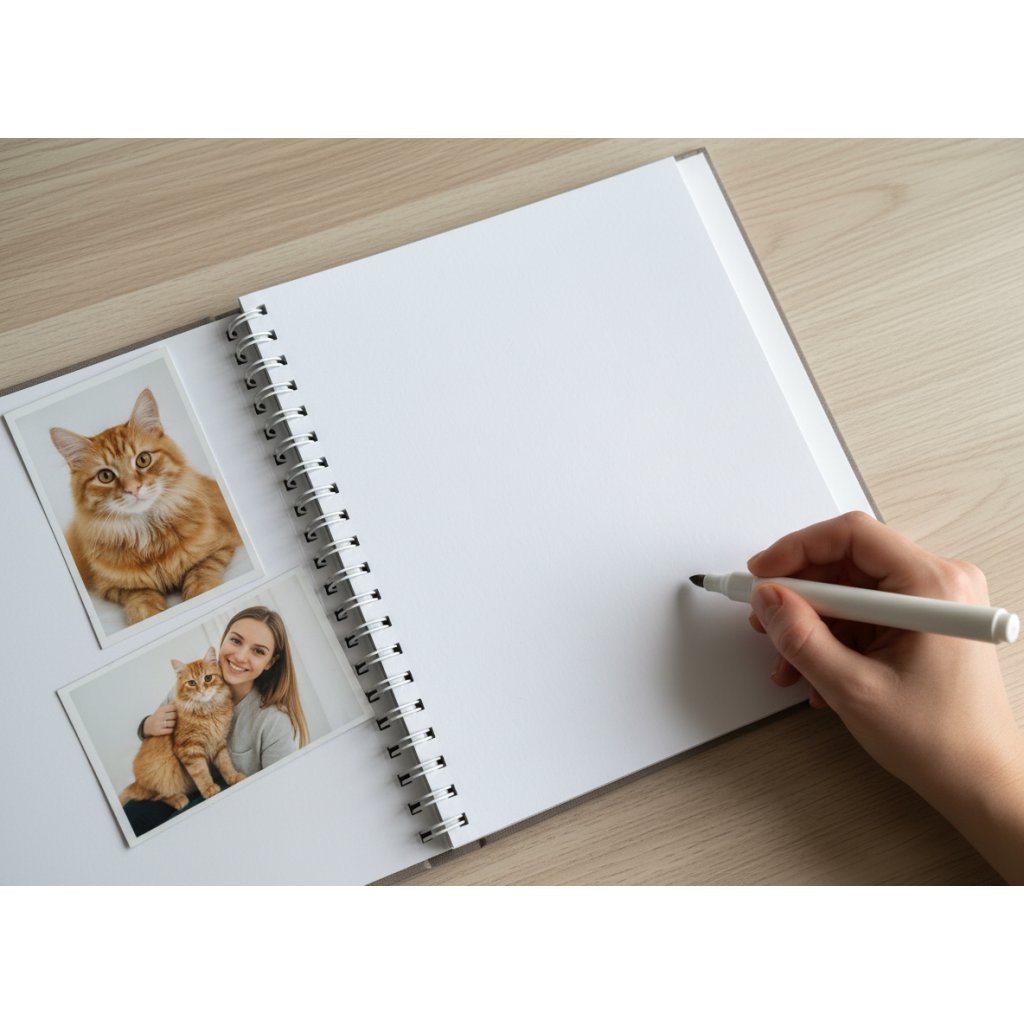 Tohle luxusní fotoalbum pro domácího mazlíčka není obyčejná kniha. Je to prostor, kde můžete zachytit všechny malé i velké okamžiky vašeho společného života. Každý list čeká, až ho naplníte fotkami, vzpomínkami, otisky tlapek nebo vtipnými poznámkami.