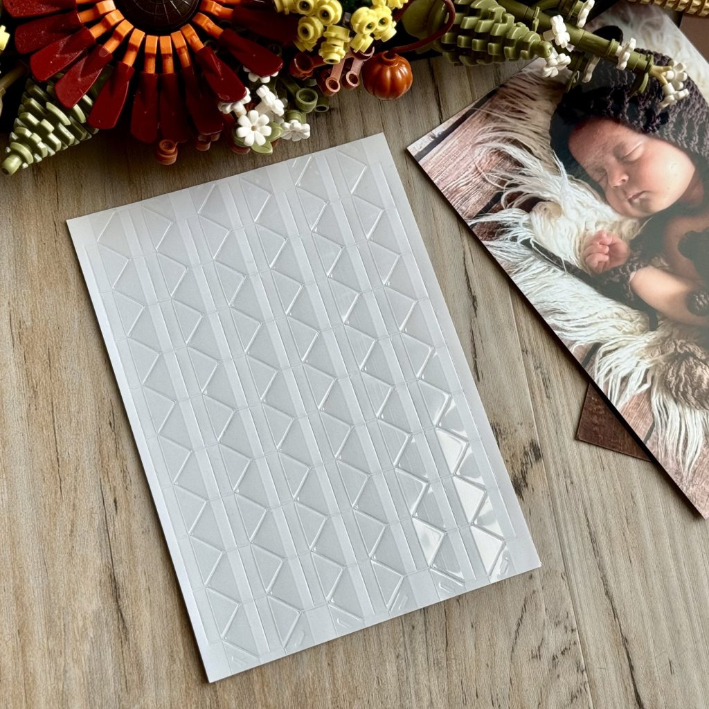 Na jednom archu najdete 102 kusů, což vystačí na krásné uspořádání až 25 fotografií. Díky nim můžete své snímky připevnit bez lepidla či pásky – čistě, elegantně a bez poškození.