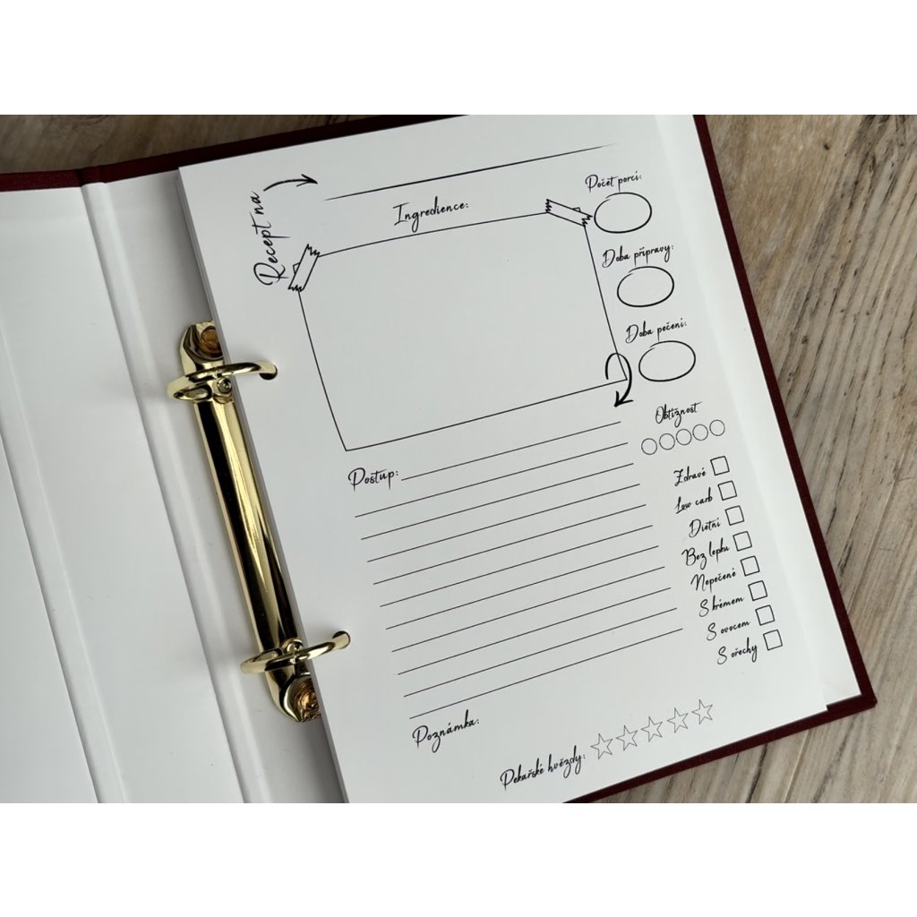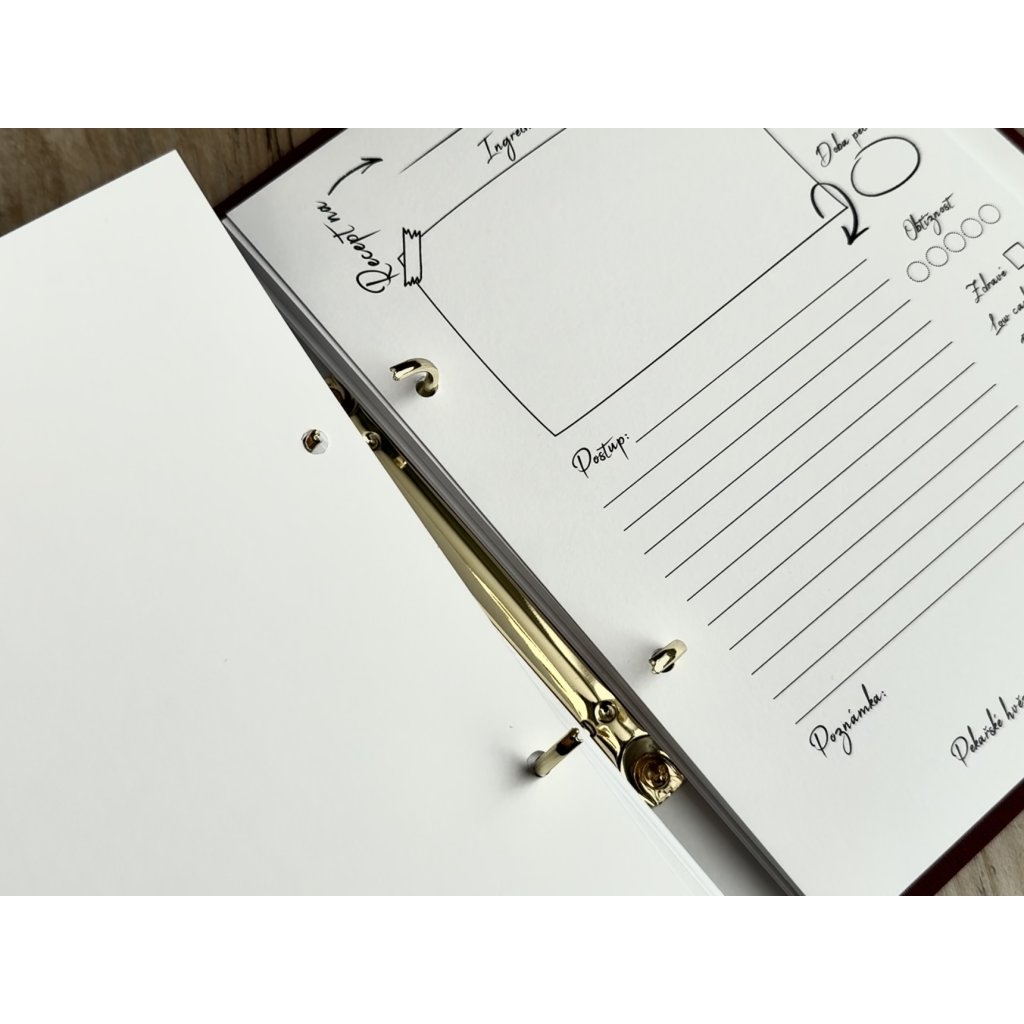 Není to jen sešit – je to elegantní šanon, který ti umožní mít vaše oblíbené recepty dokonale zorganizované. Díky šanonové vazbě můžete recepty snadno přidávat, přesouvat a upravovat podle potřeby. Kdykoliv můžete dokoupit nové listy, takže vaše kuchařka bude stále růst spolu s vámi. Pokud by se obálka poškodila, jednoduše ji vyměníte za novou.